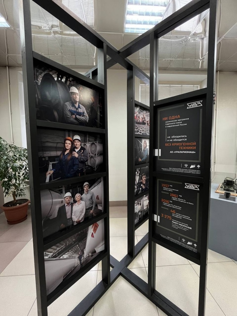 Часть экспозиции посвящена Уралкриомашу: на снимках производство и трудовые семейные династии. Петровские Валентина Владимировна и Павел Николаевич на криогенном производстве работают более 40 лет. «Я нахожусь под глубоким впечатлением от участия в выставке и очень тронута. Для нашей семьи это очень ценно. Мы с супругом приехали работать на завод в 1982 году, из Баку, закончив Политехнический институт.