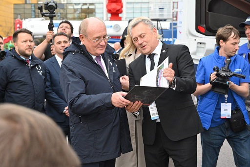 Презентация оборудования состоялась на стенде «Импортозамещение в газовой отрасли» в рамках Петербургского международного газового форума – 2024. Экспозицию контейнера-цистерны СУГ в комплексе с тягачом КАМАЗ-54901 поколение К5 посетил Председатель Правления ПАО «Газпром» Алексей Миллер и заместитель Председателя Правления ПАО «Газпром» Виталий Маркелов.